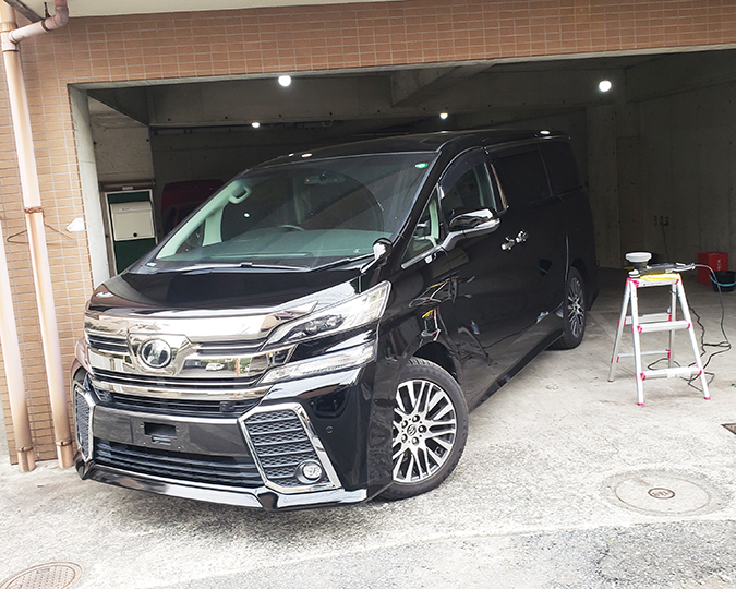 ボディを拭き上げ、コーティングムラの確認、タイヤワックスの塗布、内窓のクリーニングいたします。